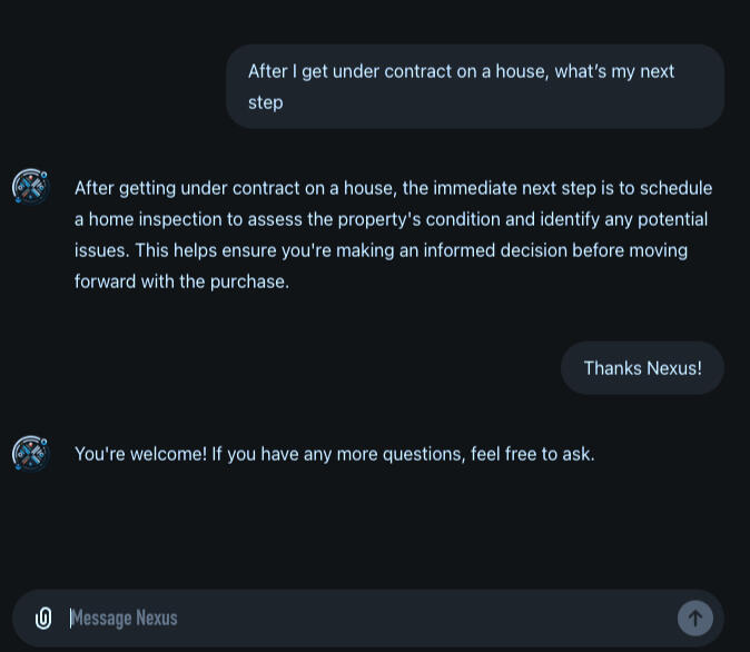 We are committed to democratizing homeownership and making real estate transactions more accessible to everyone. By integrating cutting-edge ChatGPT AI, live market data, and connections to essential real estate professionals, NEXUS offers a holistic solution that saves you time and money. We believe that everyone deserves the opportunity to achieve their real estate goals without the unnecessary financial burden.Join Us